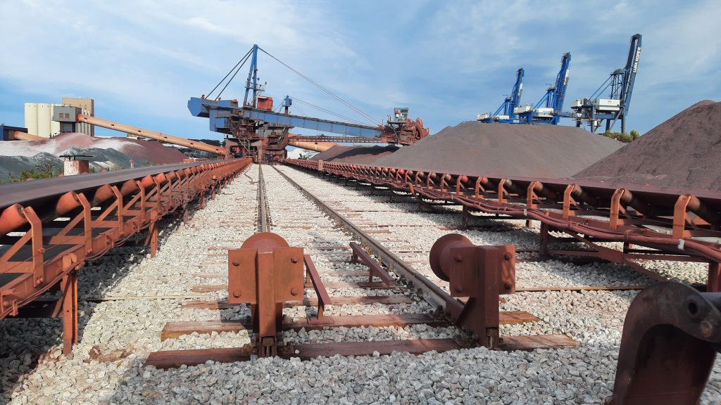 Zamenjava tirnic in pragov na nasipu deponije železove rude v Luki Koper