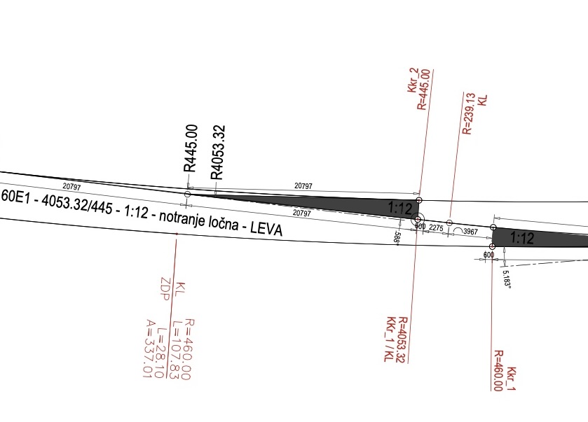 - Izdelava elaboratov smerne in višinske ureditve tirov in kretnic za potrebe zamenjave kretnic ali obnove tirov.